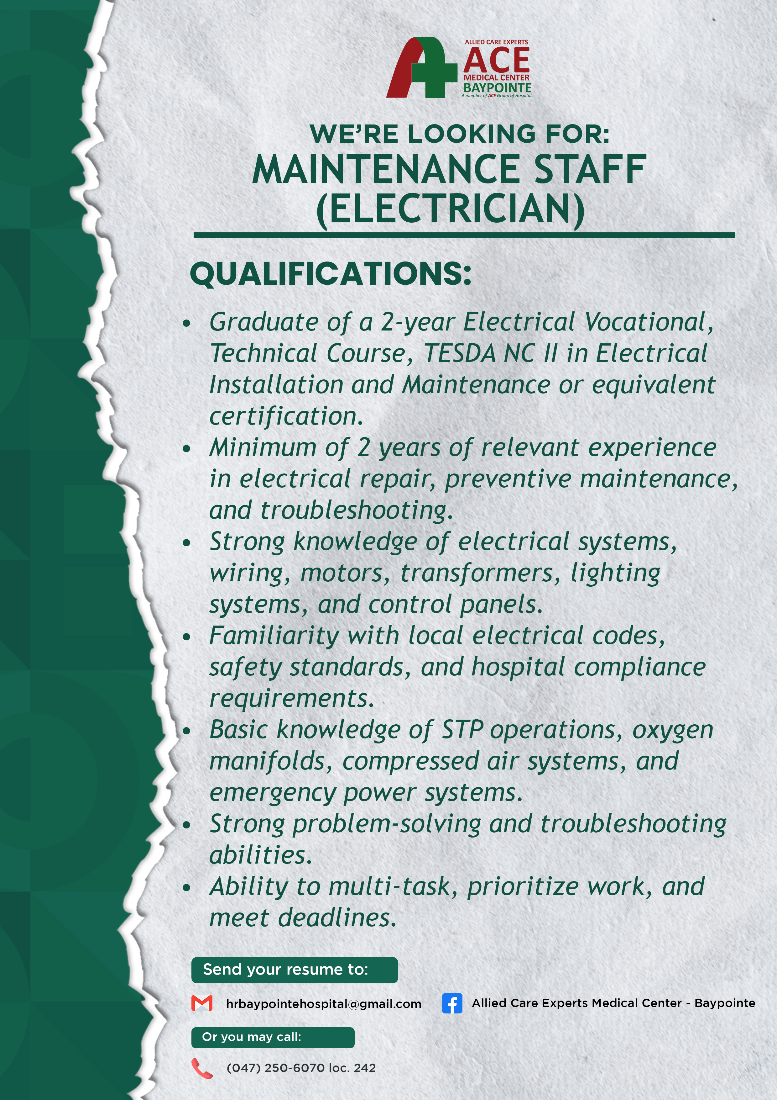 Allied Care Experts (ACE) Medical Center - Baypointe is the Subic link in the ACE chain of hospitals that maintain in.....